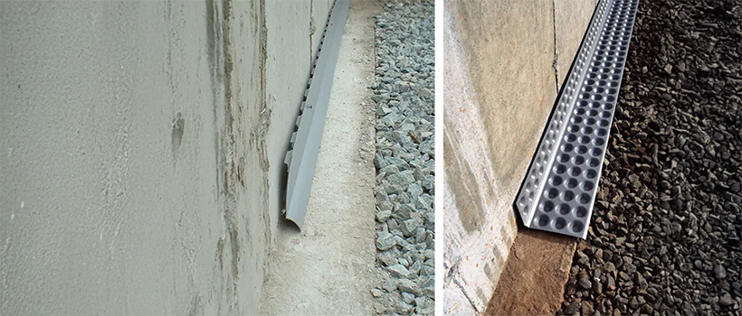 Dimpled L-shaped flashing used primarily for new construction to create a gap between the floor and wall to keep basement floors dry. CactusBoard comes with a 20-year dry basement floor warranty!